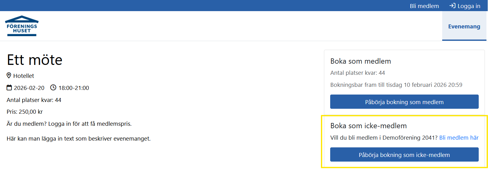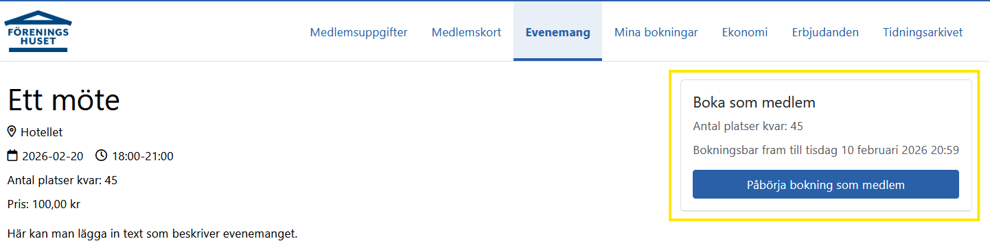 Medlemsbokning evenemang