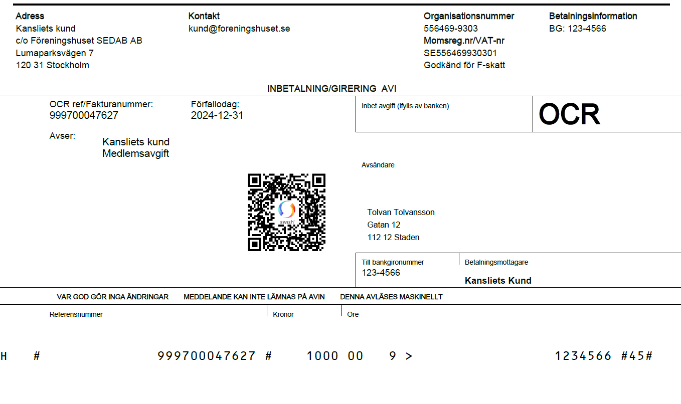 Laddar man ner en redan betald faktura från medlemssystemet eller om man manuellt ändrat fakturasaldot kommer det inte med någon QR-kod på fakturan.